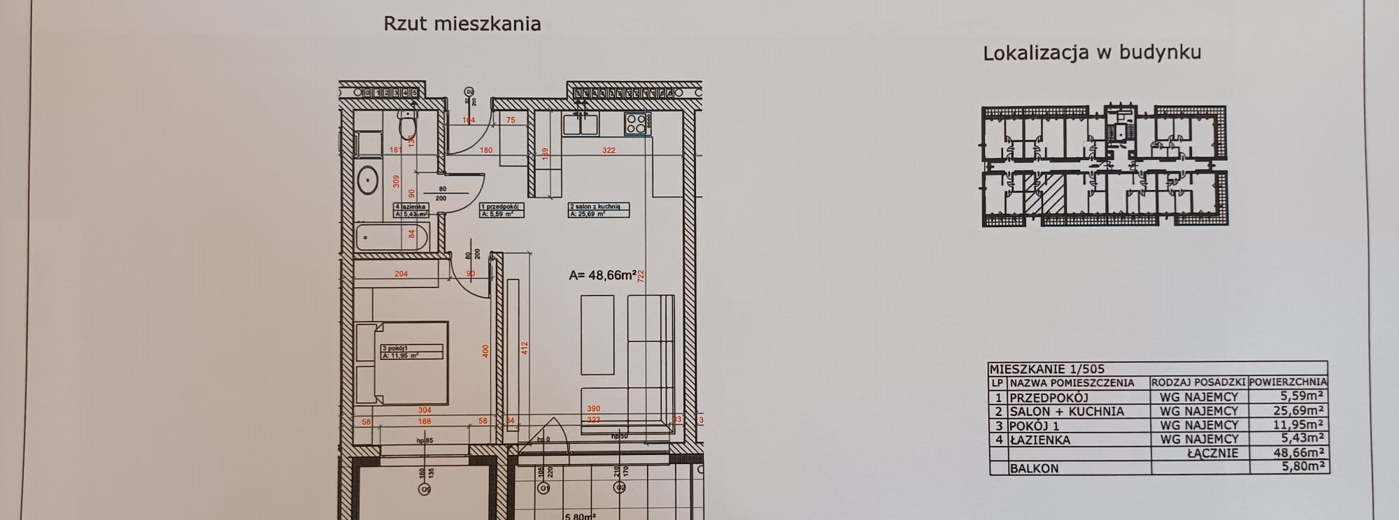 cena za m2 - 48 PLN