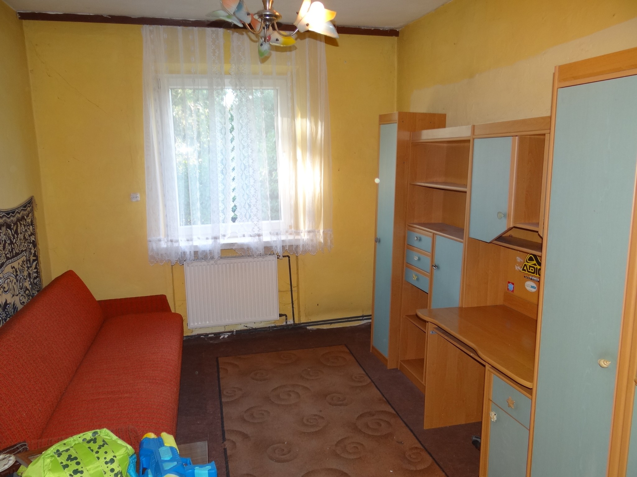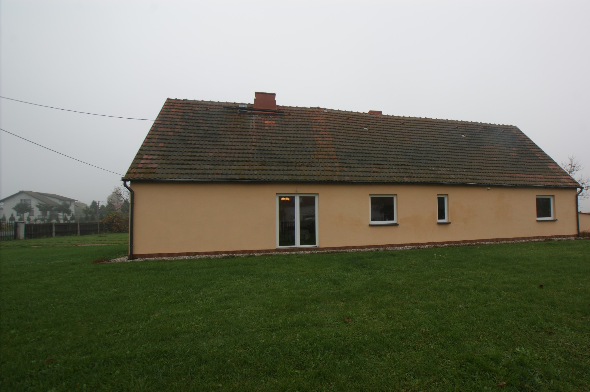 Budynek mieszkalny ma 90 m2 w parterze, plus strych do adaptacji ok. 50 m2. W ostatnich latach rozpoczęto jego remont, wzmocniono fundamenty, wymieniono dach (dachówka betonowa powlekana), okna, od strony ogrodu postawiono nową – solidną – ścianę szczytową. Modernizacji wymaga jeszcze wnętrze domu. Należy wykonać min. co, instalację-elektryczną, wod.-kan, nowe tynki i podłogi.