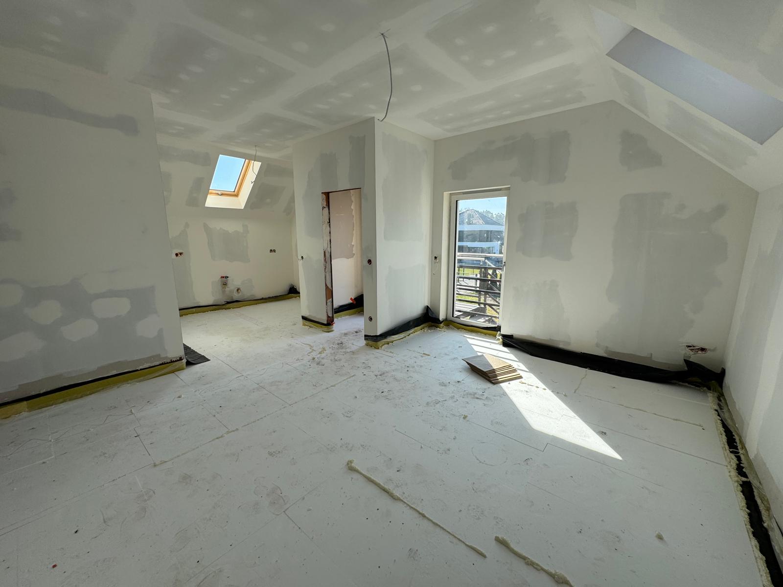 – salon ( ok. 40 m2 ), połączony z aneksem kuchennym i wyjściem na taras