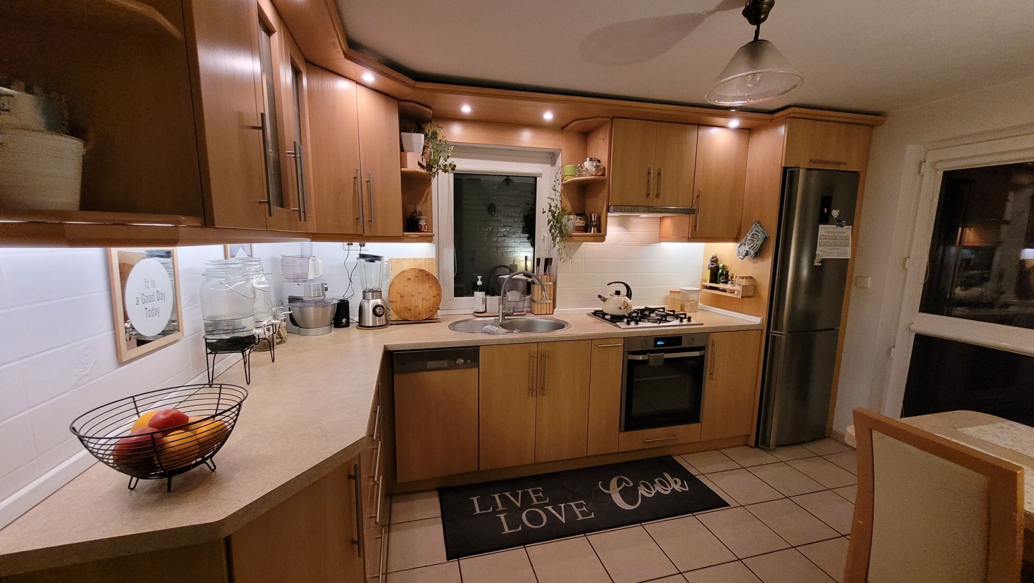 W cenie domu pozostaje zabudowa kuchenna, wraz ze sprzętem AGD: piekarnikiem, lodówko – zamrażarką, okapem.