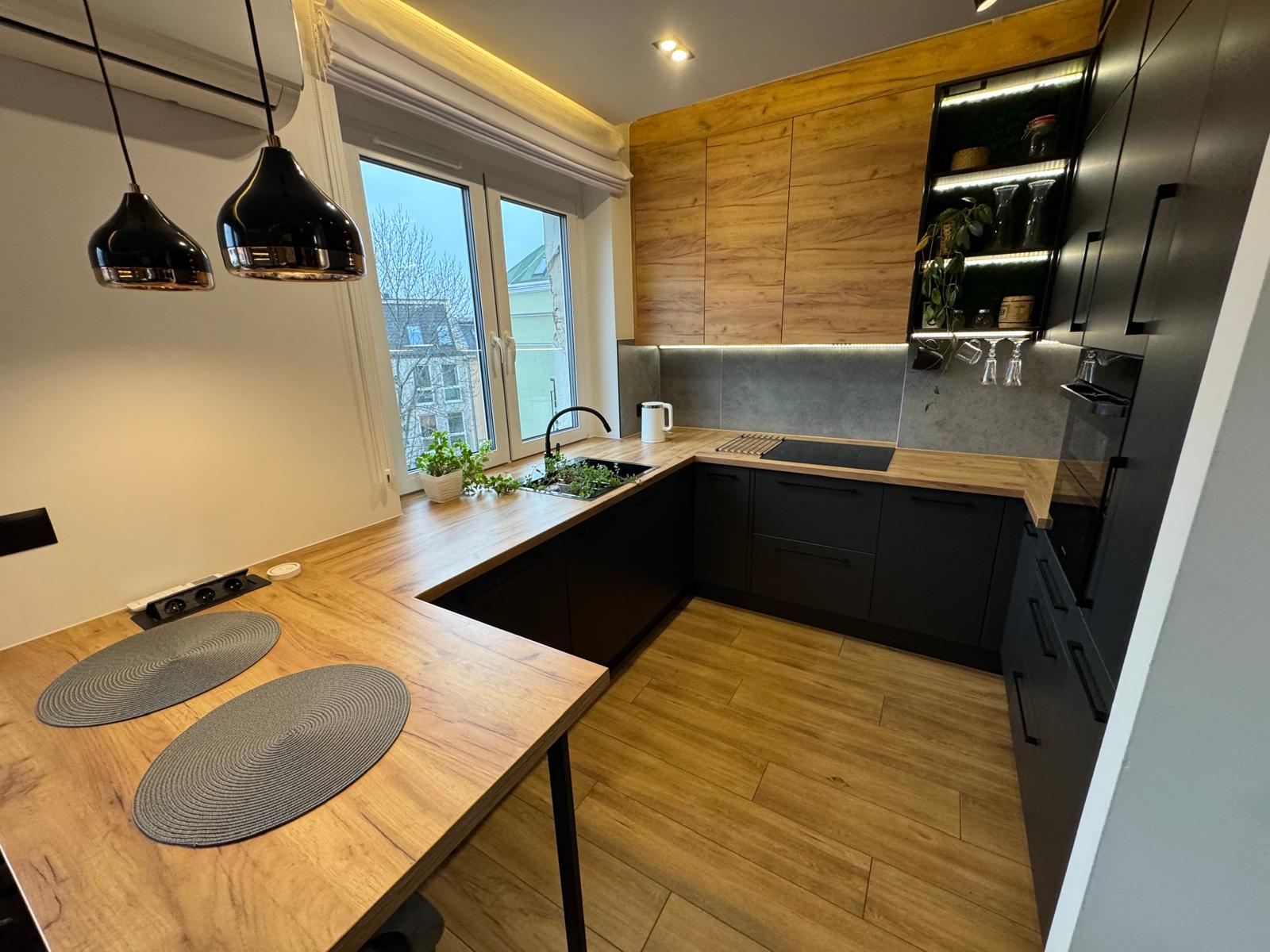 W cenie lokalu kompletne wyposażenie widoczne na zdjęciach, oraz sprzęt AGD: pralka, piekarnik, zmywarka, lodówko – zamrażarka, okap, płyta indukcyjna.