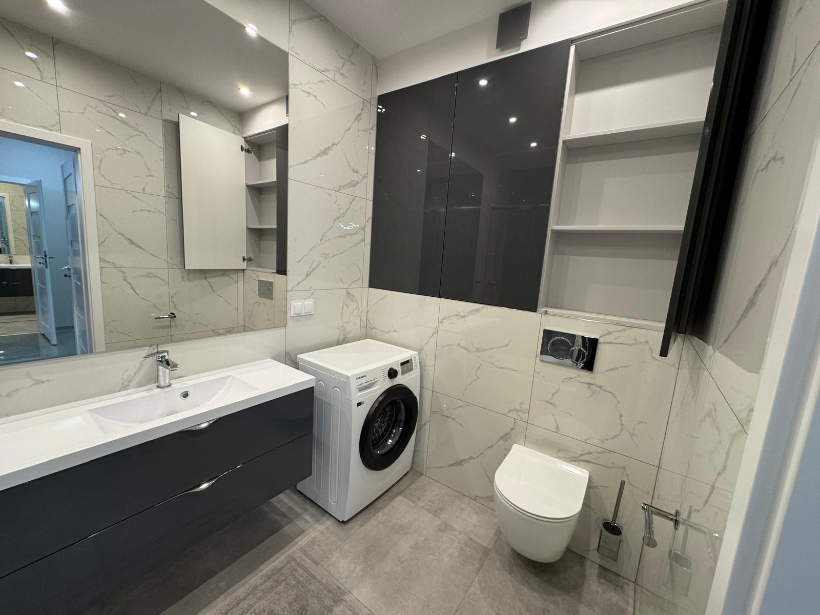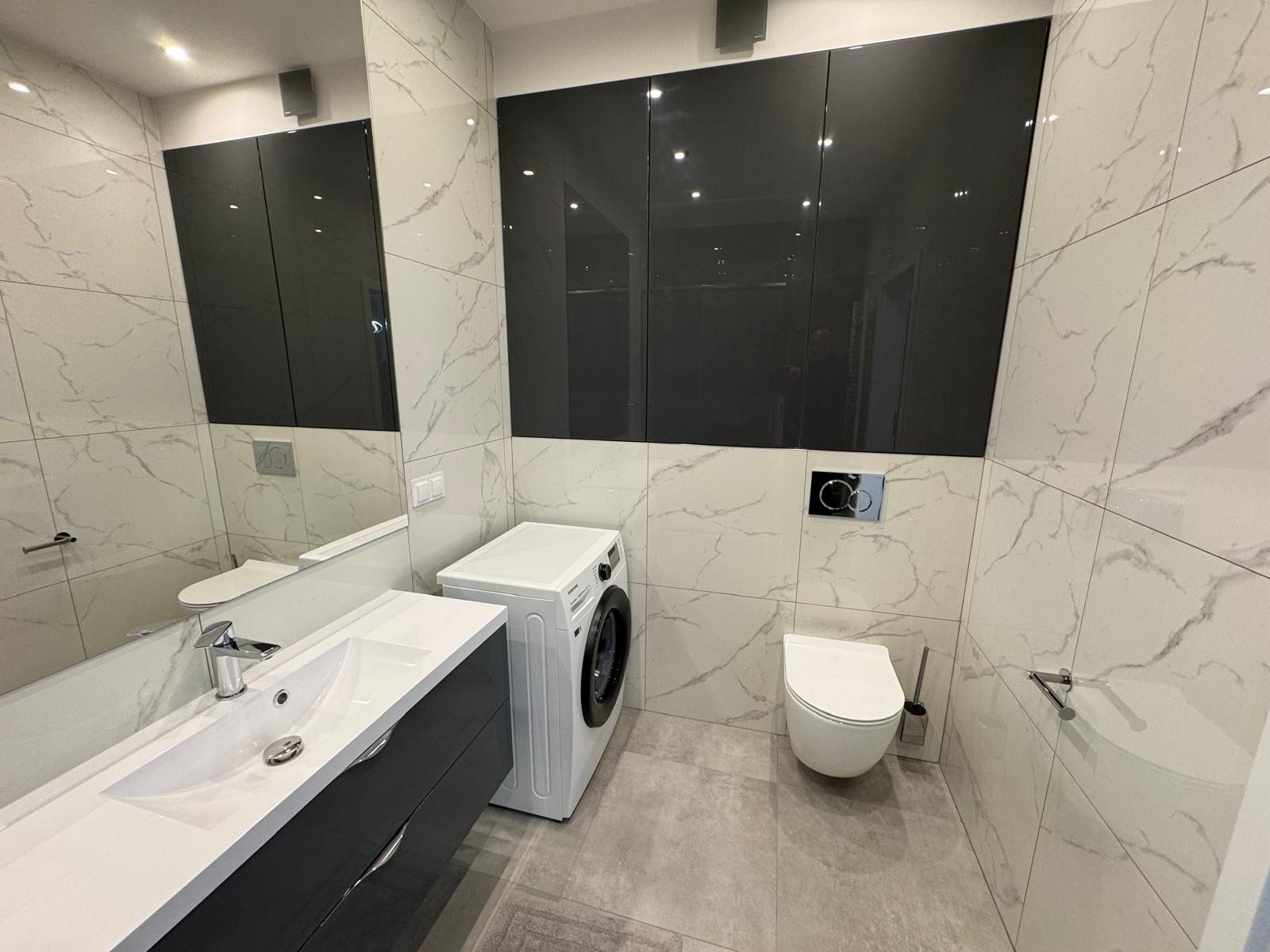 Mieszkanie sprzedawane z kompletnym wyposażeniem widocznym na zdjęciach, oraz ze sprzętem AGD m.in. z : pralką, lodówko – zamrażarką, kuchenką, płytą grzewczą, okapem, zmywarką.