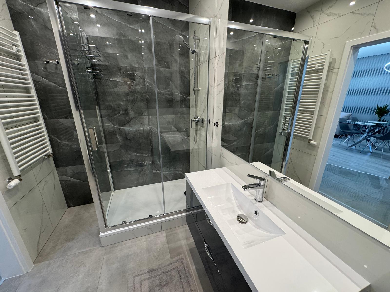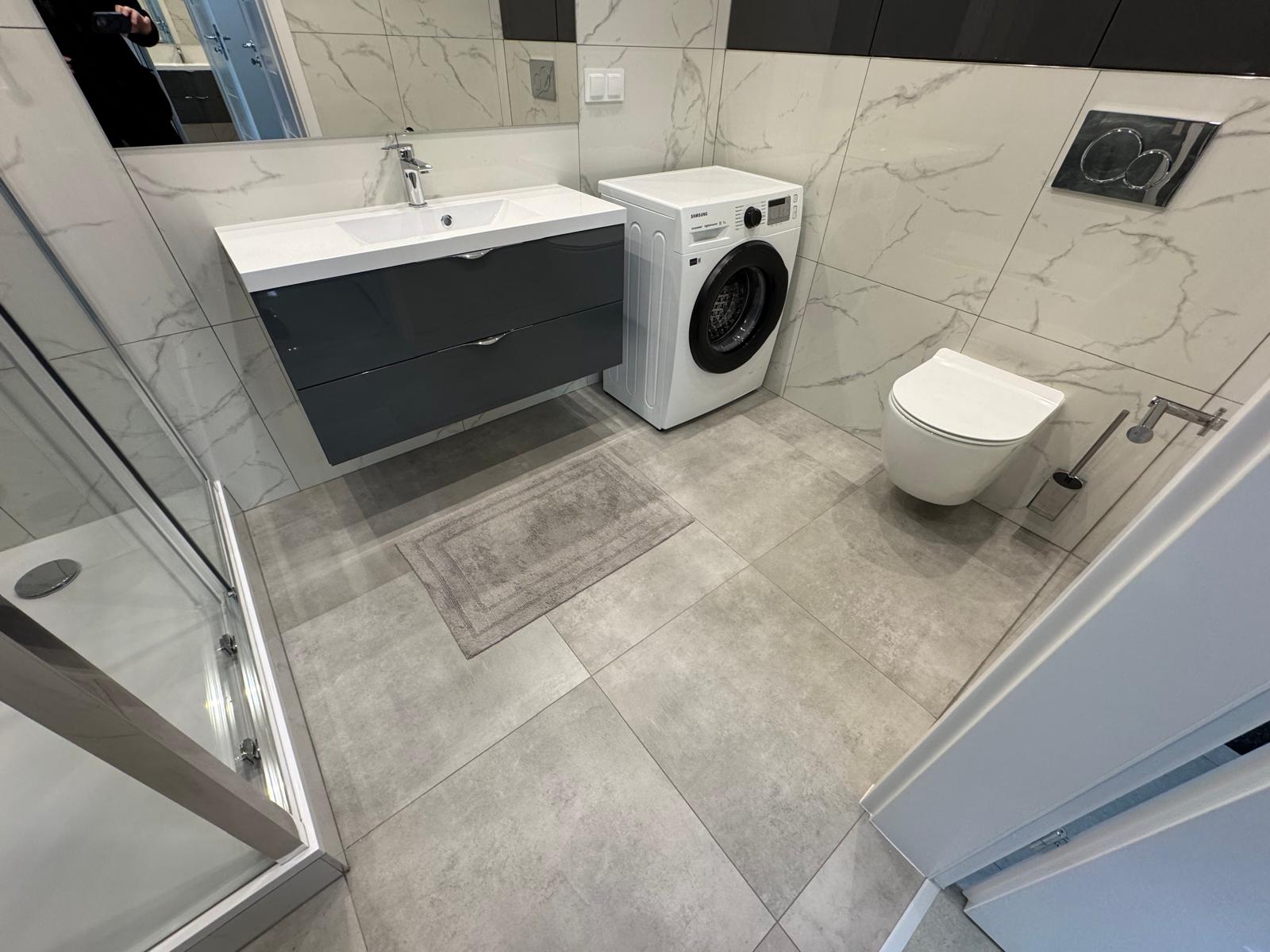 – łazienka z wc i prysznicem