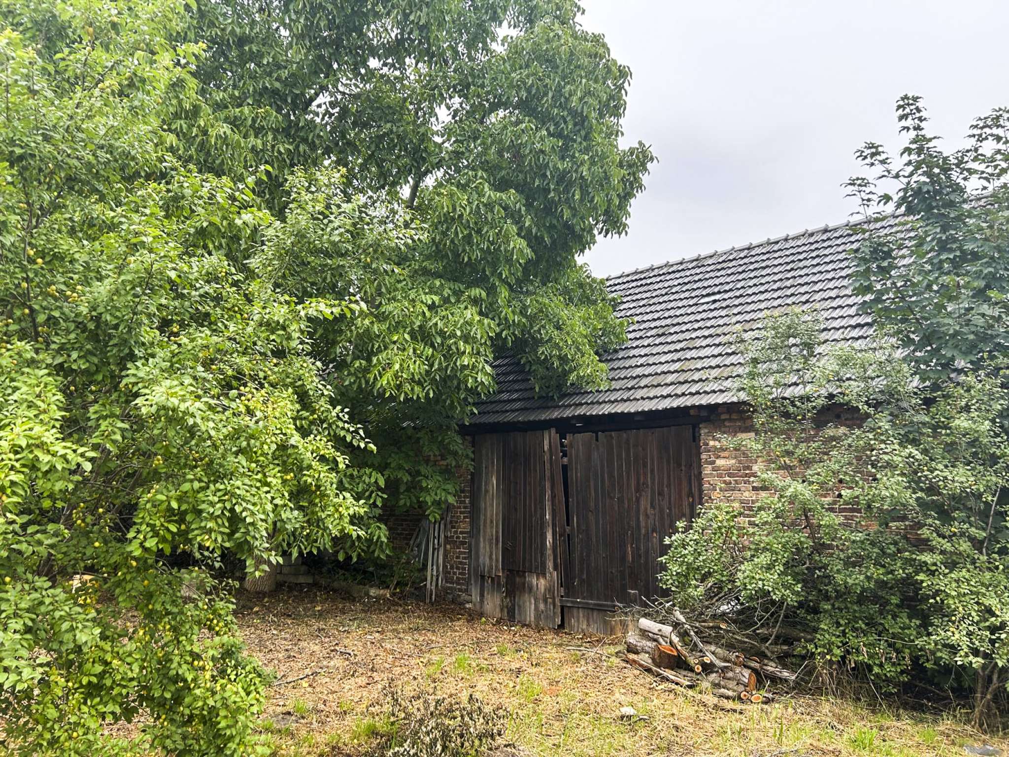 Teren jest bardzo duży i zadrzewiony, częściowo ogrodzony, co stwarza genialnie opcje do aranżacji ogrodu i sadu wraz z wykorzystaniem stodoły.